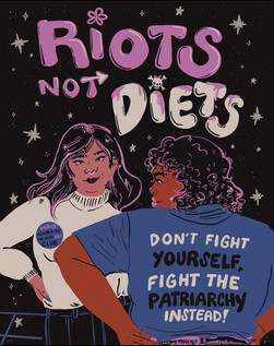 Und (ich meine) ganz im Sinne von Laurie Penny habe ich dann auf Instagram ein Artwork der amerikanischen Künstlerin Caitlin Blunnie entdeckt, das ich mit dem Handy gescreenshottet habe. Ich mache das recht häufig, wenn ich interessante Beiträge finde, Rezepte und Links, auf die ich später einmal zurückkommen möchte und habe einen eigenen Ordner dafür auf meinem Telefon eingerichtet. Anyway: Die Grafik hat mich an ein weiteres Buch erinnert, das ich in diesem Jahr lesen (und damit meinen SuB weiter abarbeiten) möchte: „Riot, Don’t Diet! – Aufstand der widerspenstigen Körper“ von Elisabeth Lechner. Und apropos Essen.